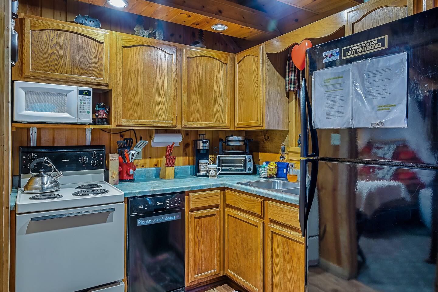 Our cabin features a delightful hot tub, a romantic bedroom, Wi-Fi, a well-equipped kitchen, a queen-sized bed, and a comfortable sleeper sofa. The gas fireplace makes the cabin extra warm and cozy during the colder weather months, available only from October to March.
